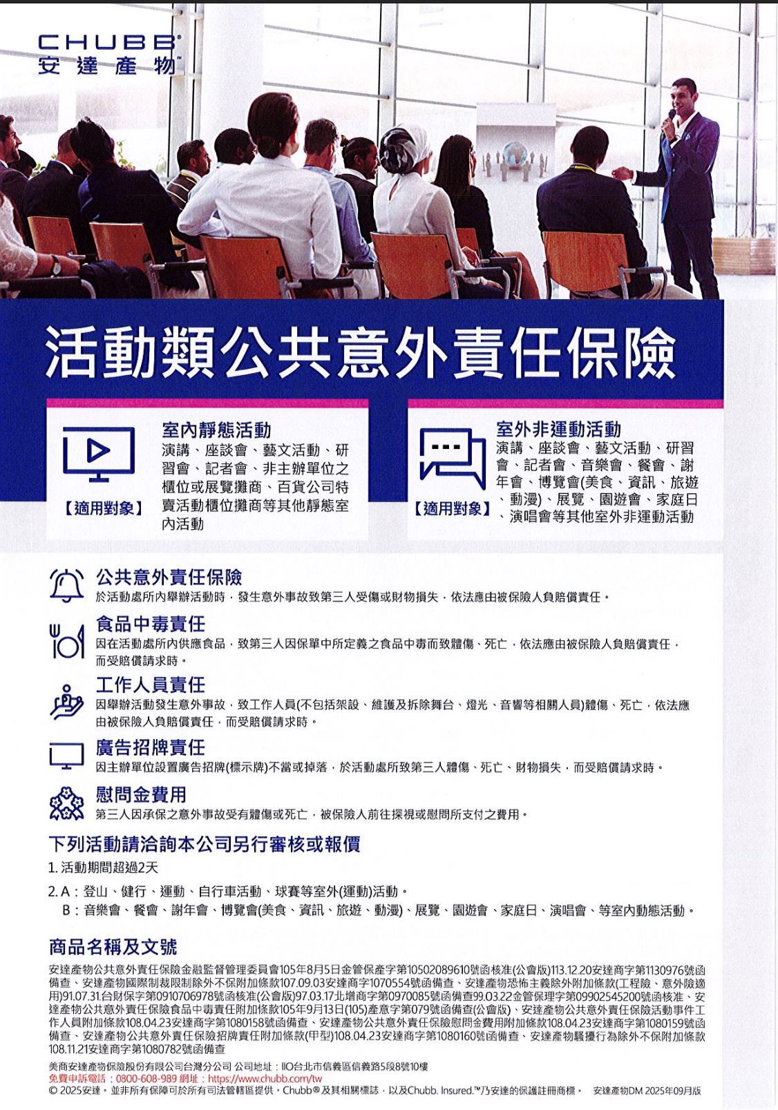 美商安達產物~類活動公共責任意外保險_114.11.28起
