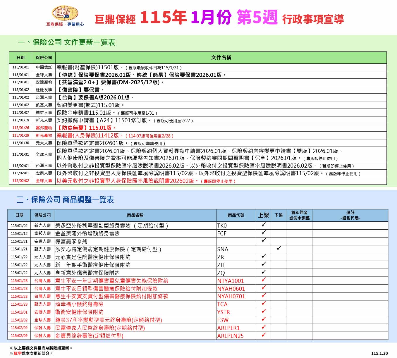 巨鼎保經~115年1月第5週【行政事項宣導】