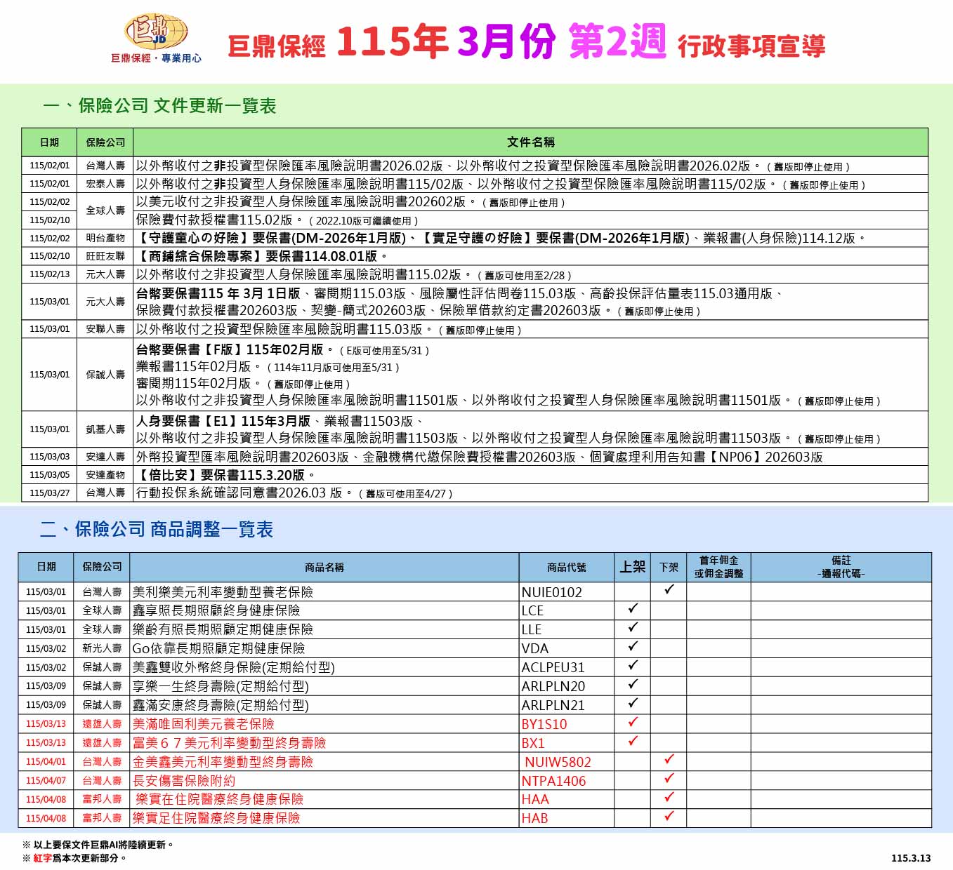 巨鼎保經~115年3月第2週【行政事項宣導】