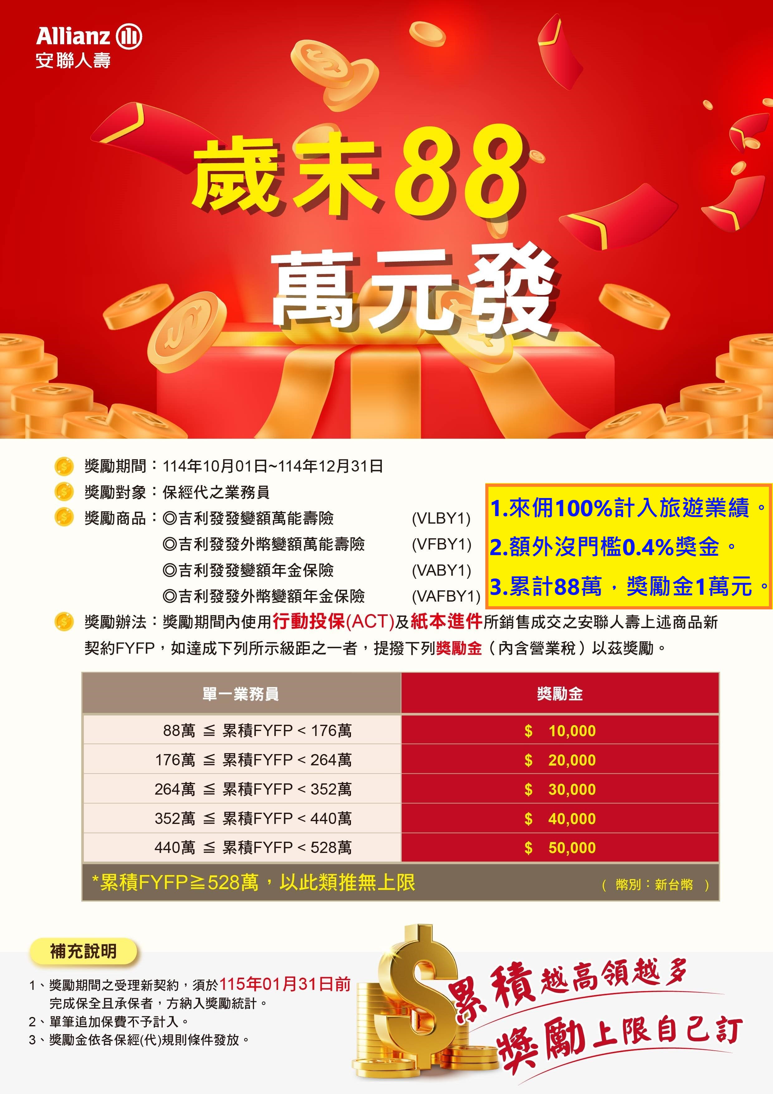 安聯人壽~2025年Q4業務員獎勵
