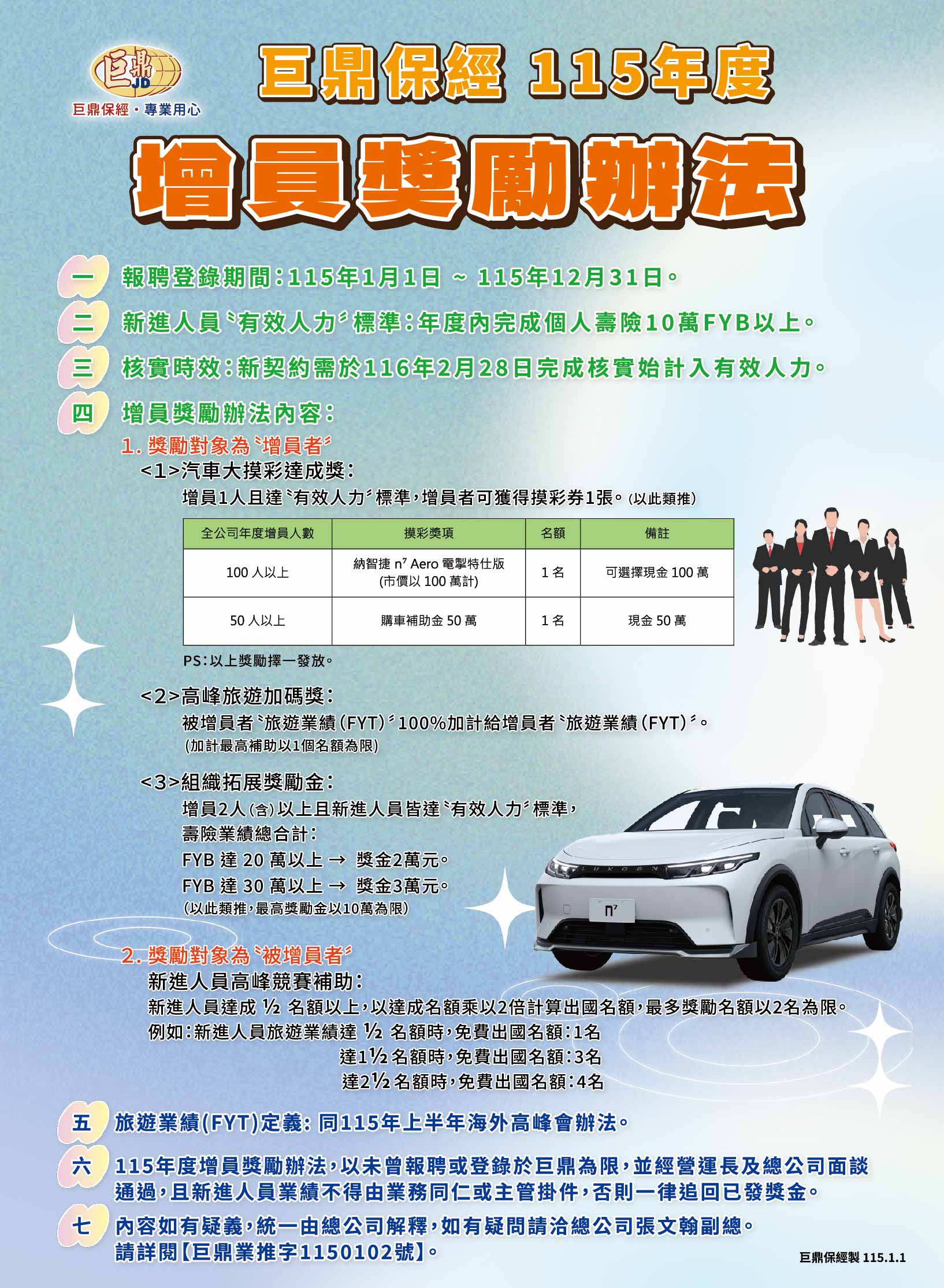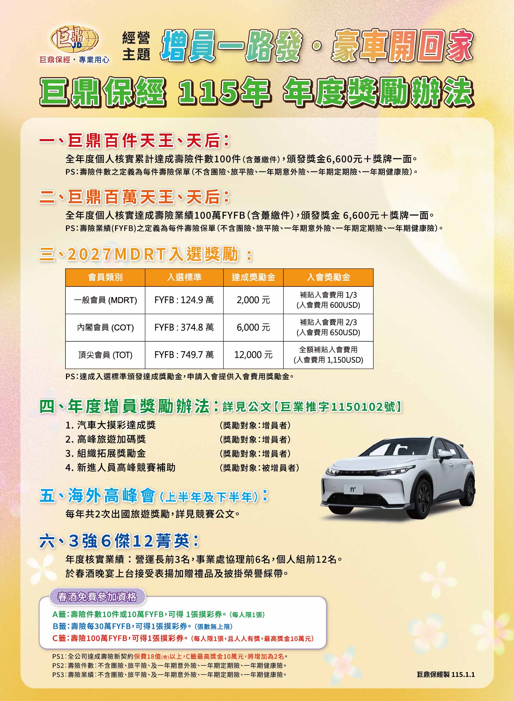 巨鼎保經~2025年度歡樂週年慶獎勵辦法