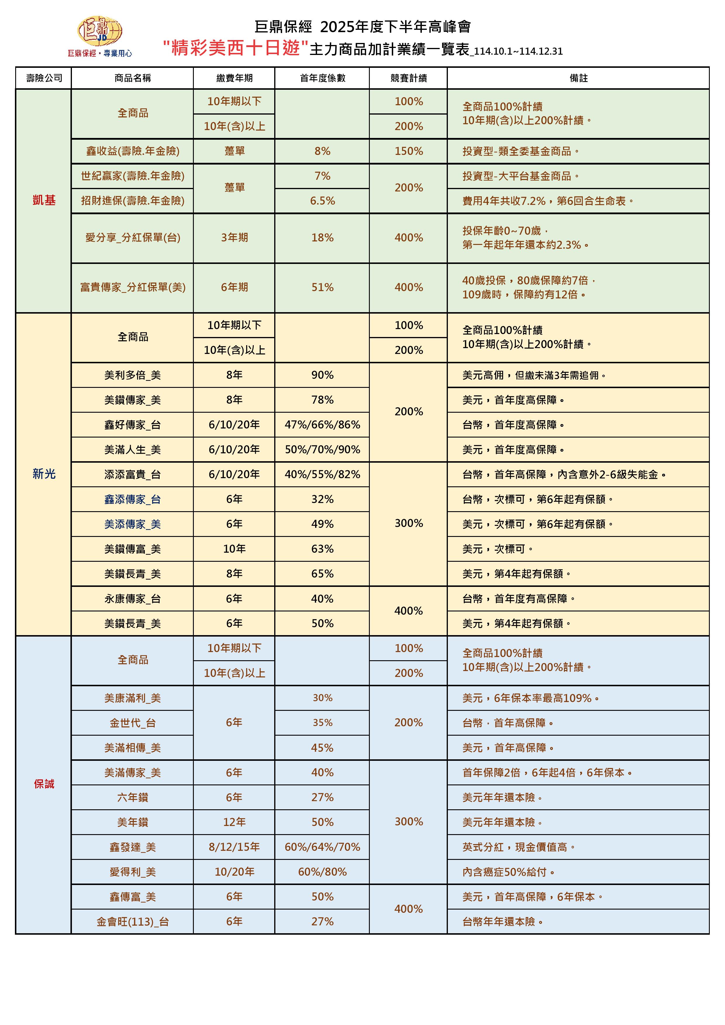 巨鼎保經~2025年下半年精彩美西高峰加碼商品一覽表-1_114.10.10