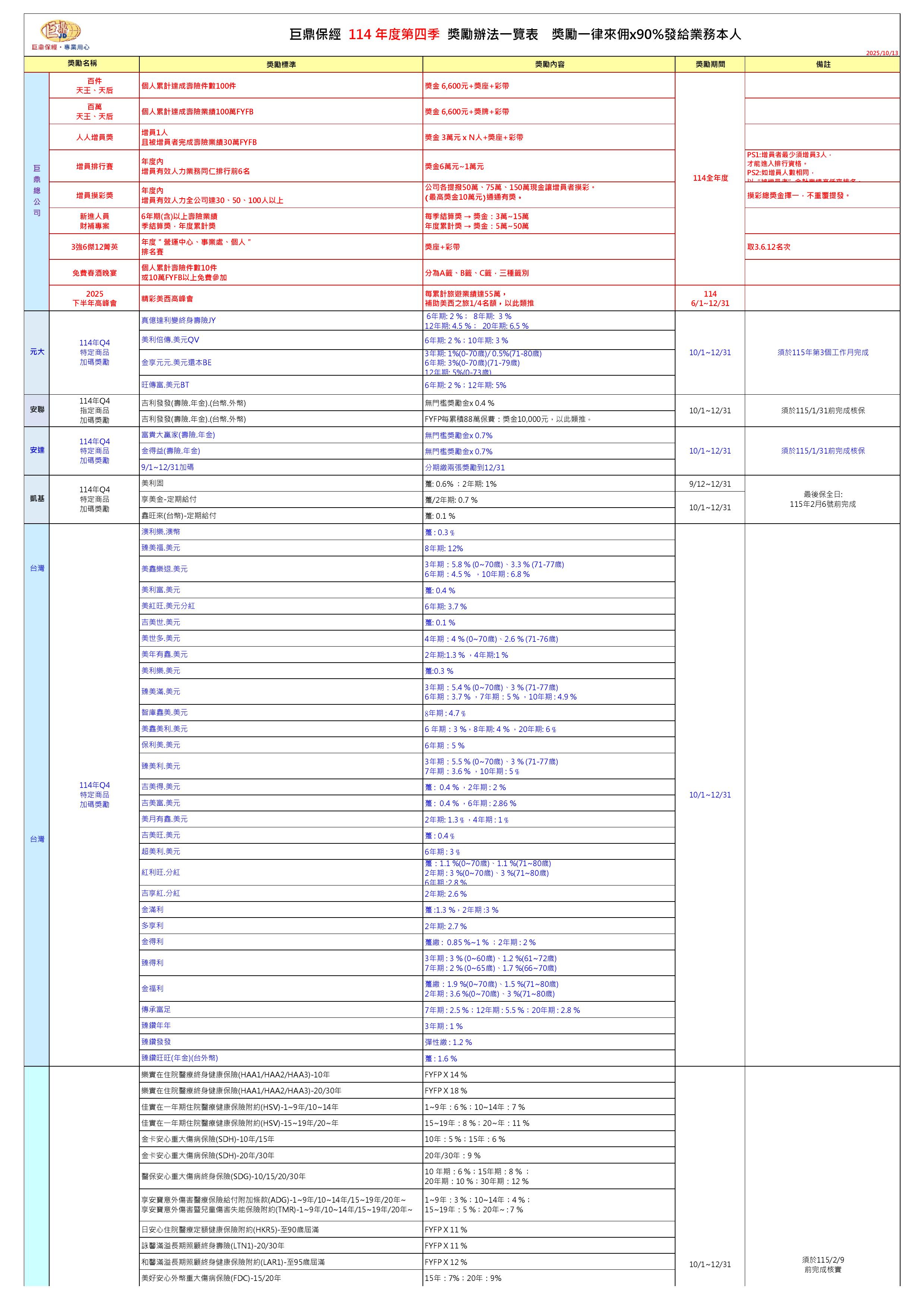 巨鼎保經~2025年度例行性獎勵辦法