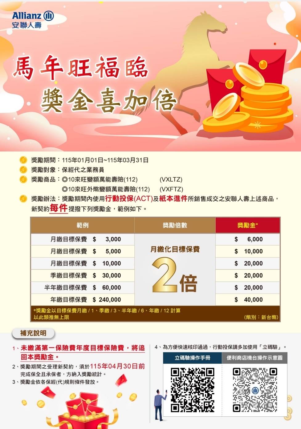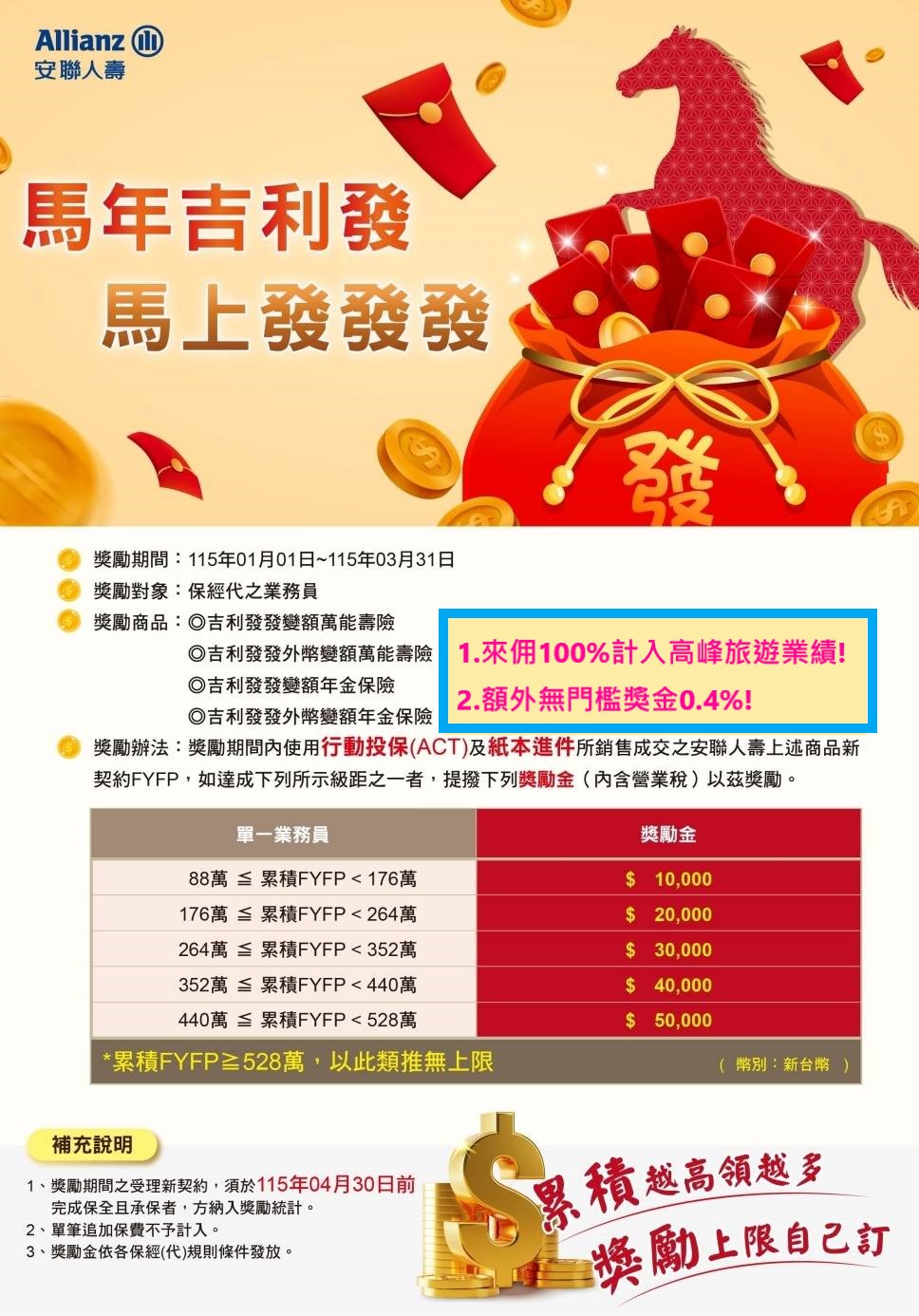 安聯人壽~2026年Q1_10來旺業務員獎勵