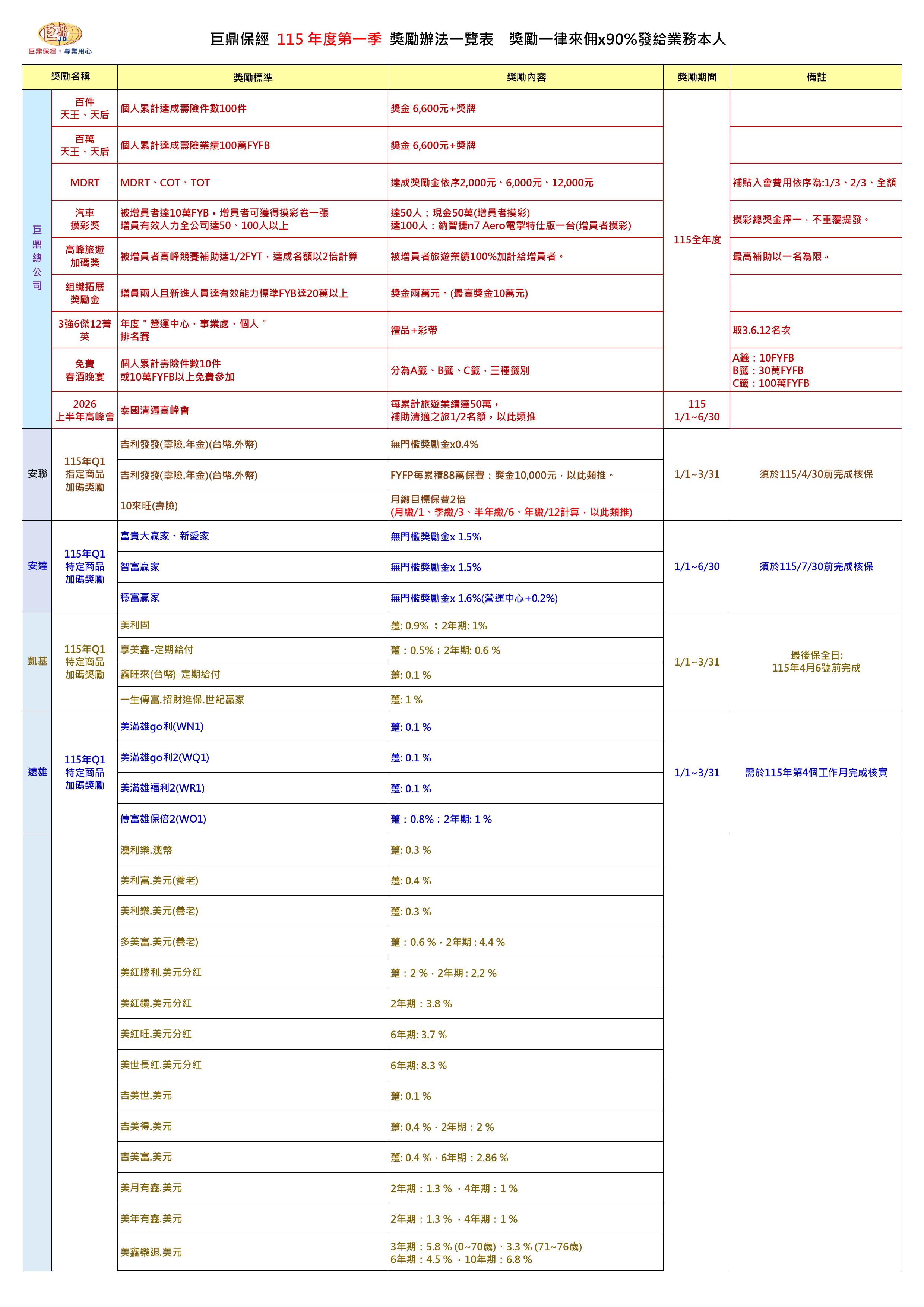 巨鼎保經~2026年上半年高峰競賽加碼商品一覽表_115.1.29-1