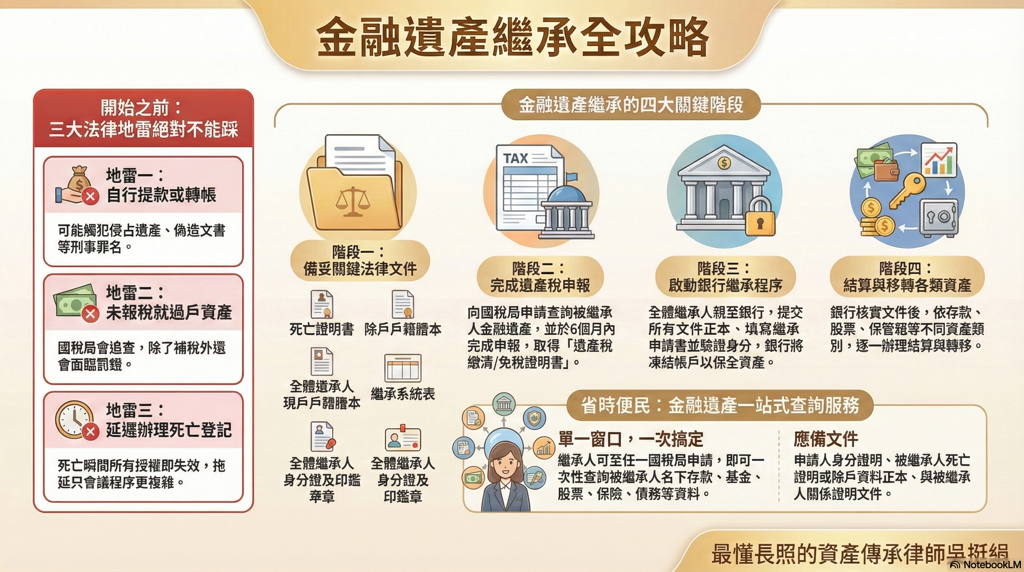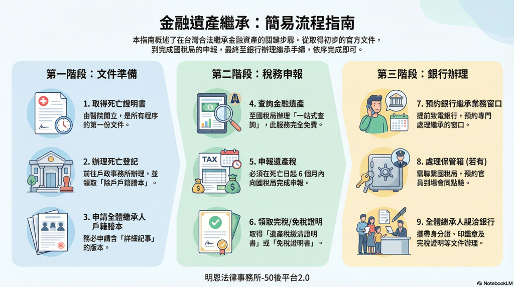 要順利繼承金融遺產,我們必須依法循序漸進: